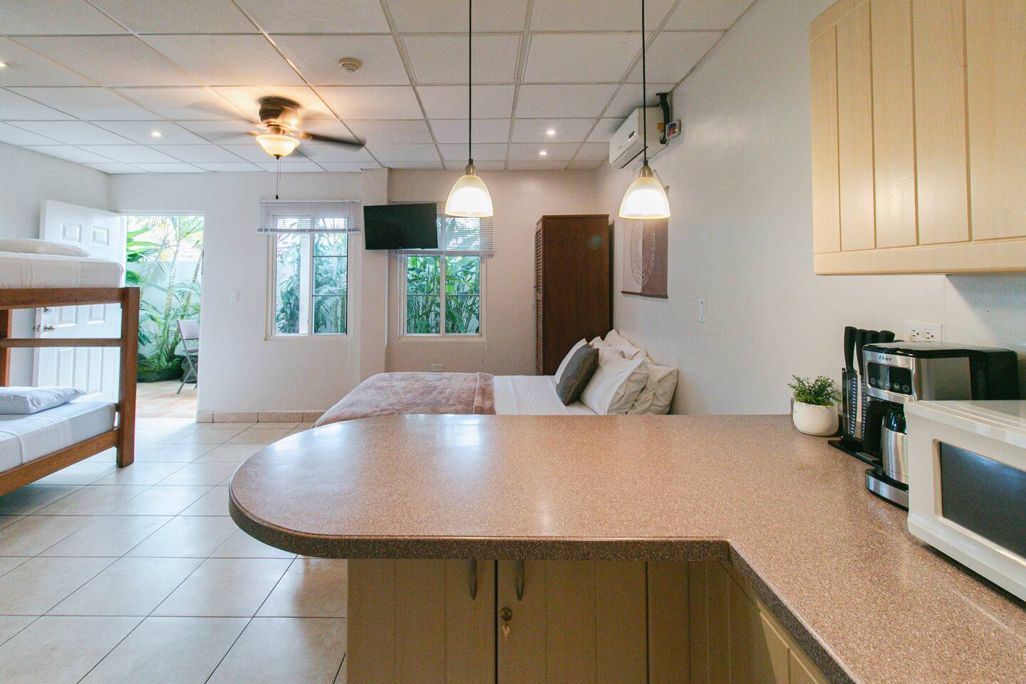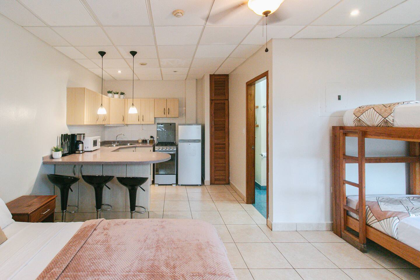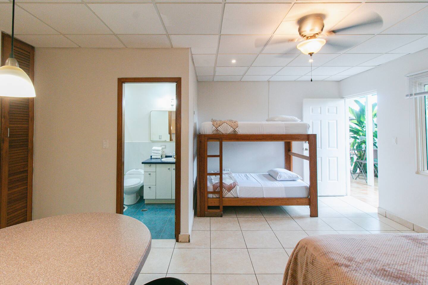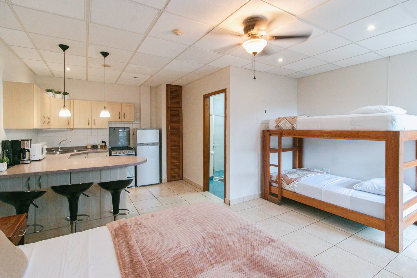 This bright, spacious & comfortable apartment is located right in the heart of Bocas Town – steps away from cafés, boat taxis, and everything you need to enjoy Bocas. • AC, WiFi, Netflix, hot water for a great stay • Queen-size bed, bunk-bed, private bath & full kitchen • Easy walk to the stores, nightlife & tours • Safe, clean & quiet – perfect as a base for your adventures • Whether you're here to surf, dive, explore, or just unwind we’re happy to share tips about the best spots & hidden gems!